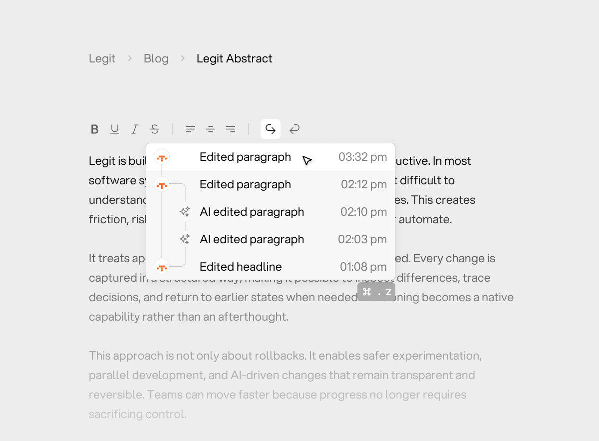 This research comes from years of building collaborative editing systems and watching undo/redo break in production. It's part of ongoing work at Legit, where we're building infrastructure for AI collaboration with control.